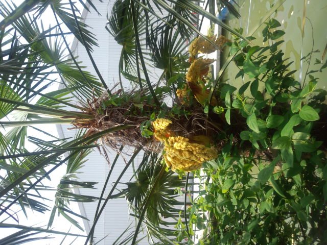 実は劇団向けの脚本家(コント作家)で、 今日、その劇を、 会社終わってから見に行きます。 実は、そのチケットをケータイで予約する際、 迷惑メール対策しているコトを忘れ、 確認メールが来ませんと、メールしてしまい、 その奥さんから、 直々に電話がかかってきたことがありました。 どうも、作家兼プロモーター兼チケット販売係みたいです。 電話を取った時、 チケット予約したym=ダンナの部下って、 相手が認識しているかどうか判からなかったんで、 ぎごちなく対応し、 結局身分を明かさないまま対応しちゃいましたが、 後で上司に聞いたら、 向こうも、言おうか言うまいか、 迷っていたそうな。 さすがコント作家。 自分で身を以てコントを演じるとは。 楽しみです。 写真はシュロの花。会社にて。 |