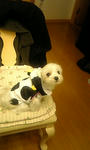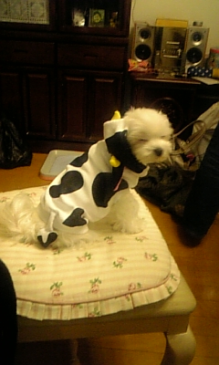 (土曜日) ・午前中、窓拭きを外側だけしました。 ・午後は法事でカミさんの実家。 ・例によって甘いモノ攻撃で1キロ増えました。 ・帰り道、自宅そばでイルミネーション渋滞にハマり、やっとこさマンション着いたら、最上階でぱぁちぃやってたらしく、エレベーターから酔っぱらいの男女がたくさん降りてきてなかなか乗れずイラっときました。 (日曜日) ・午後、カミさん、長女とお買いもの。 ・パチンコで50円負けました。いつも買い物待ちに勝負して大負けしないのは、神様のプレゼントなんですかね? ・帰ってからはわんこに牛になってもらって年賀状用撮影会。 ・2日連続で留守番し、キライな写真をいっぱい撮られて、かわいそうだったンで、家族4人で散歩してあげました~ ※ちなみに写真は牛になる前のモノです。 |