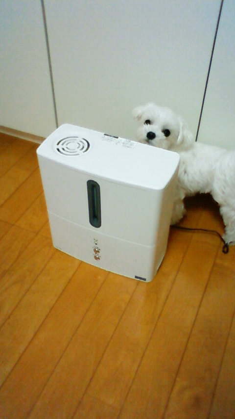風呂上がりに保湿オイル、寝る前に抗アレルギー剤というのももう限界。 仕方がないので会社の帰りに加湿器を。 いろいろ吟味した結果、コンパクトなスチーム式のヤツを4千円弱で。 おかげでなのか単なる自己暗示なのか、昨日は夜中1回も起きることなく、ぐっすり眠れました。 わんこが、ぽこぽこと音を立てながら湯気が出るさまが不思議だったみたいで、しょっちゅう覗き込んでいたのがかわいかったです。