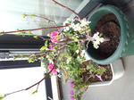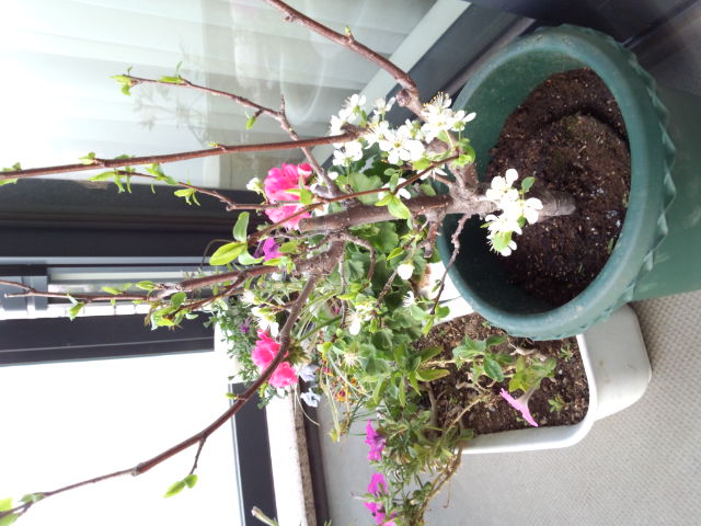 カミさんと日本橋の○越へ。 日曜日なんで相変わらず駐車場は満杯で、 周囲の休止中のいっぱいあるパーキングメーターも、 全て埋まってました。 あそこは、法律上は駐車禁止なのに。 前回行って駐車場に並んでいたら、 誘導係の人が、 「絶対来ないから、あっちのほうがいいですよ」 なんて言ってたから、 警察と話がついているのでしょうかね。 周囲を2周して、仕方なく駐車場待ちの最後尾に車をつけると、 ○越の上っ張りを着た誘導係のおじさんが来て、 もうこれ以上は並べないから、提携している本町の駐車場はどうですか、と。 遠いし、はいったら最後、出る時、助走20mしかないのに、 60~70kmで切れ目なく爆走している 昭和通りに合流しなきゃならんのですが。 それだけの腕があると見込まれたのなら光栄ですが、 多分、年齢と中途半端な車格のせいでしょう。 だって、だったら1台前のポル○ェのほうが上手いでしょ。 結局、離れたコインパーキングに停め、 お店に入ると、相変わらず派手で高そうな格好のおばあちゃんばっか。 なのに、狭い車寄せには、Fが2台にアストン1台。 どうなっているんでしょう。 お返しを買い、催事場を見て、最後に屋上へ行ったら、 大好きな園芸コーナーがあったんで、 プルーンの樹を買ってしまいました。 桜のような花です。 実がなるといいなぁ。。