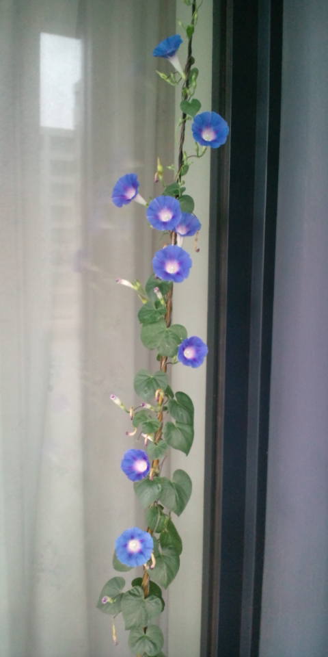 今日は、アサガオに群がる巨大なイモムシと格闘しました。
